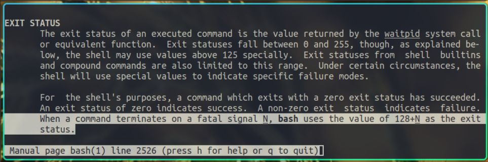 看上图中的选中行,它说的就是,当进程是被信号终止的时候,那这个进程的退出状态或者说是退出码,就是128加上这个信号值。