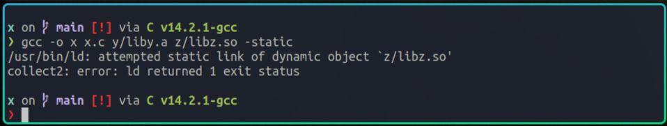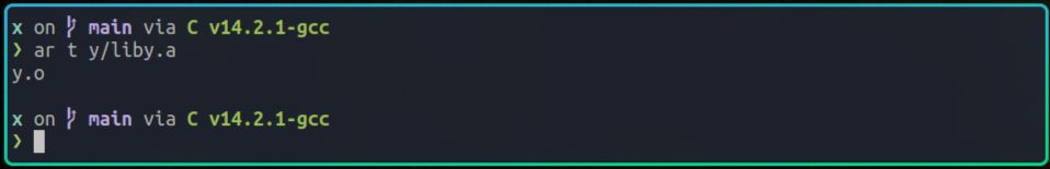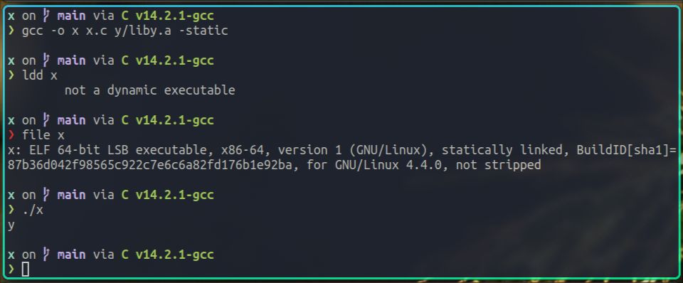 注意,在生成x的命令里,我是直接使用y/liby.a这个全路径的方式,来指定要链接的静态库。