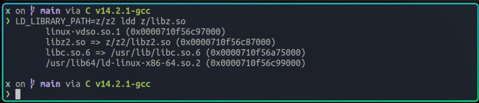 它运行时依赖libz2.so,而libz1.rlib则被静态链接到了libz.so里。