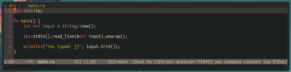 下面是用rust写的一段测试程序,逻辑非常简单,就是读取用户输入,然后将其输出。