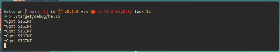 这次再按Ctrl-C,程序就不会退出了,而且还会输出 got SIGINT。